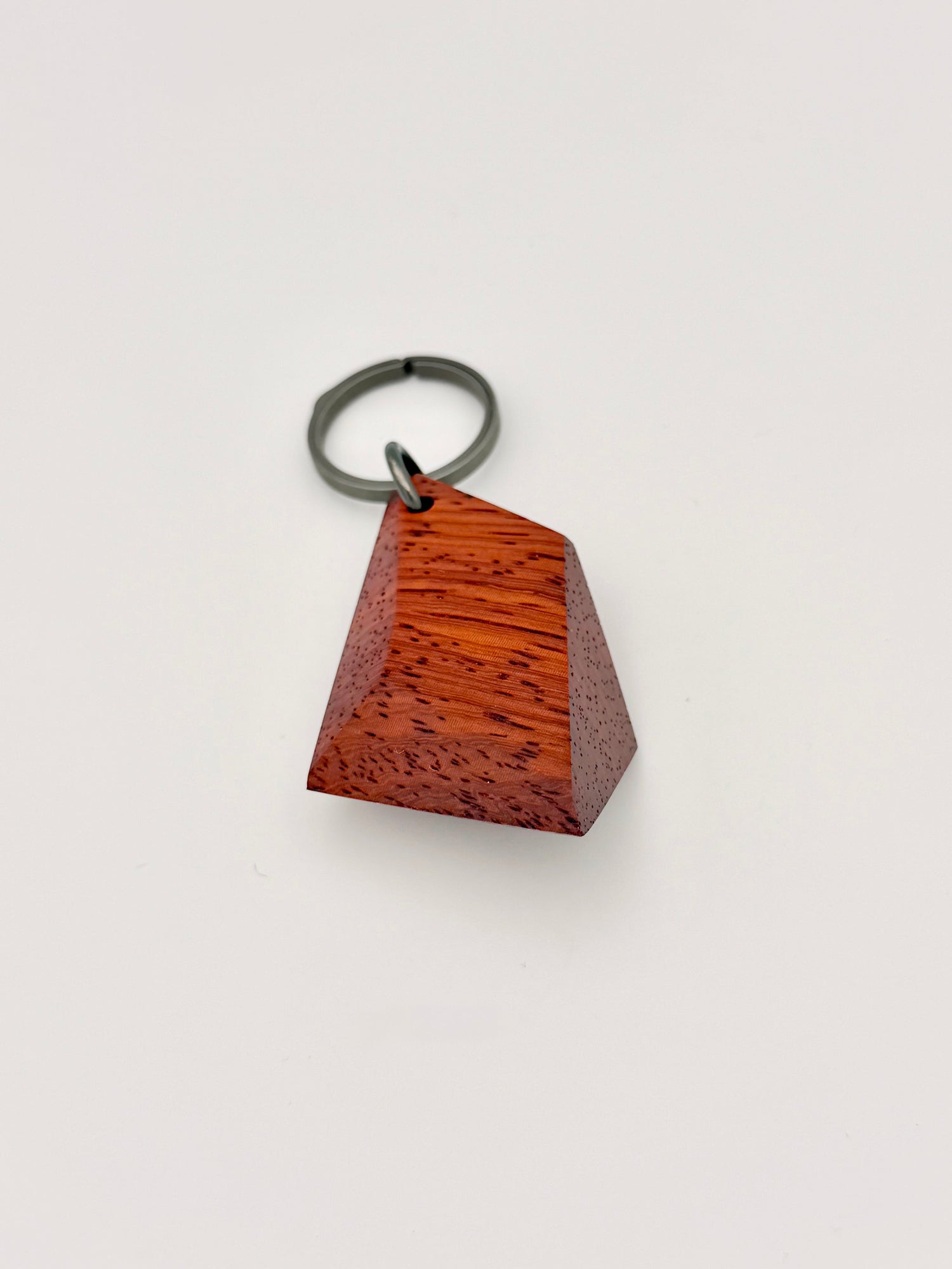 Padauk wood paired with a titanium push-mount ring. No more damaged nails! This key chain eliminates the frustration of traditional split rings. The intuitive design—locate the notch, apply thumb pressure pushing the top portion away from you while drawing the base ring towards you with your index finger—cleanly separates the components for effortless key additions. Its minimal weight makes it equally suited as a functional accessory, tactile fidget object, or refined bag charm.