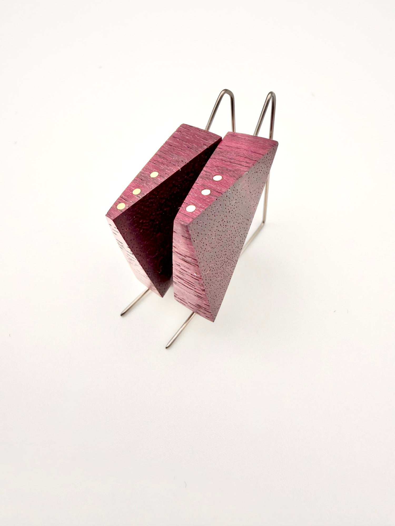 Purple Heart is showcased in these fun Geo Squares, with asymmetric brass inlay details—a nod to my most iconic designs from the original collection.