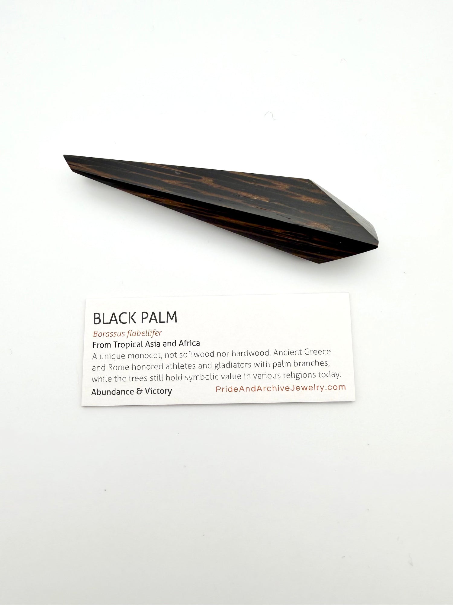 Geometric and minimal Black Palmwood Brooch with Sterling Silver pin back.